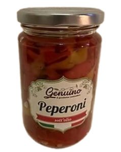 Poivrons en lamelles, croquants, conservés dans l'huile de graines de tournesols. Fabrication artisanale.