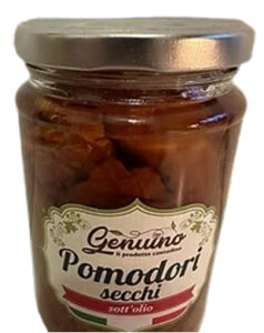 Tomates séchées conservées dans de l'huile de graines de tournesols. Poids net: 180g | ||